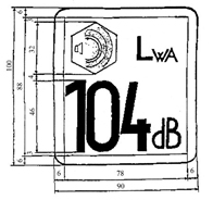 Die Angabe des garantierten Schallleistungspegels muss aus der einfachen Zahl der garantierten Schallleistung in dB, dem Zeichen LWA und einem Piktogramm mit folgendem Aufbau bestehen: